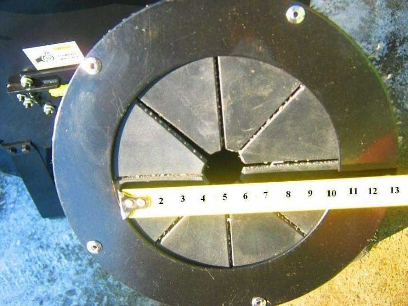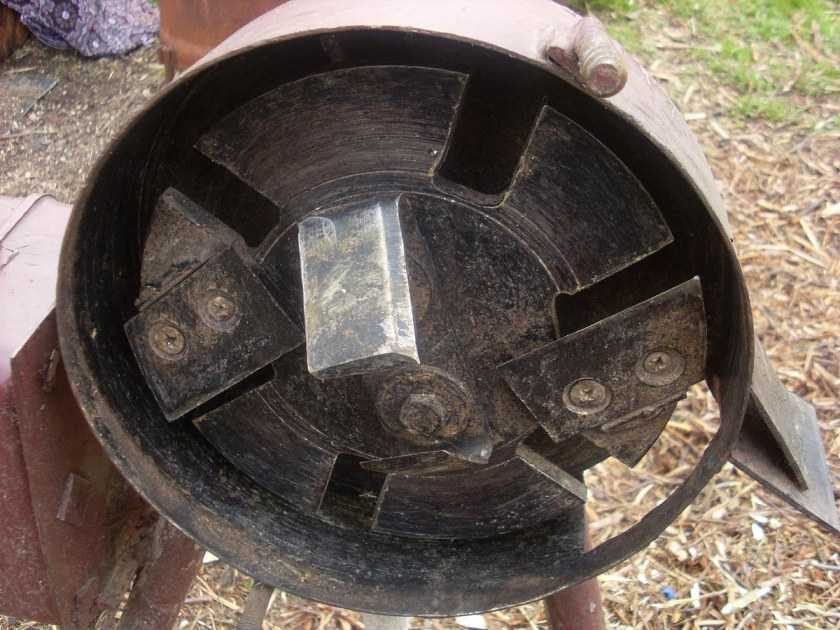 Сам кожух, помимо защиты от получения травмы, выполняет функцию горловины, куда подают ветки для измельчения.