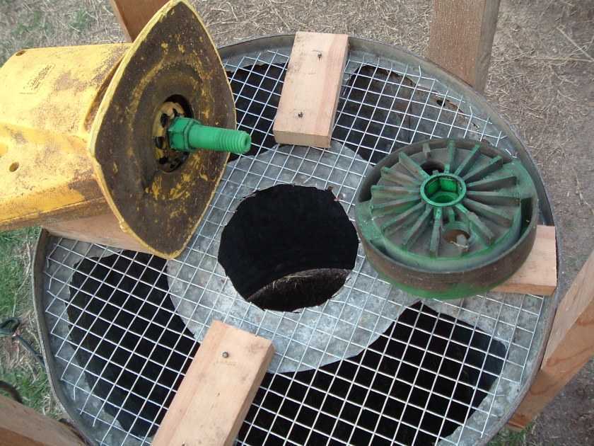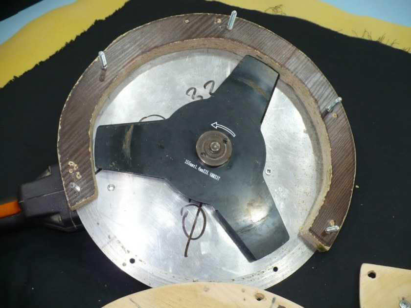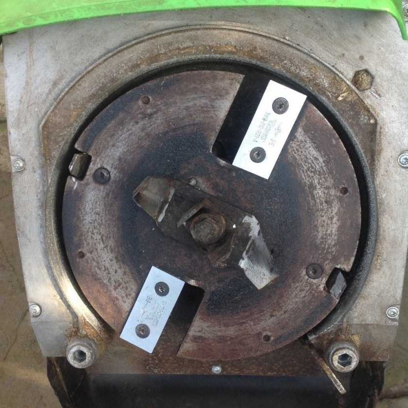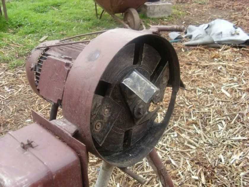 Мотор установить на краю станины, а барабан с ножами — примерно посередине. Двигатель закрепить жёстко, на гайки и болты. Барабан следует монтировать на раму посредством подшипников, через втулки. Саму раму с валом установить на станину так, чтобы имелась возможность небольшого продольного перемещения барабана, для регулировки натяжения ремня.