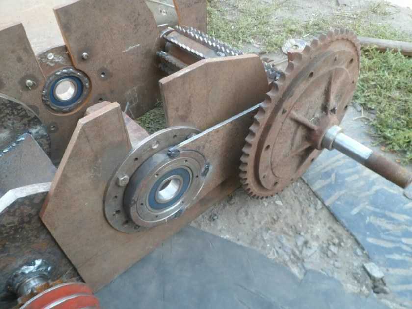 К барабану прочно прикреплена большая, основная шестерня. На нее, и на крепление, ложится вся нагрузка. Поэтому надежность элементов должна быть на должном уровне. В зацеплении с основной, расположена ведущая маленькая шестеренка.