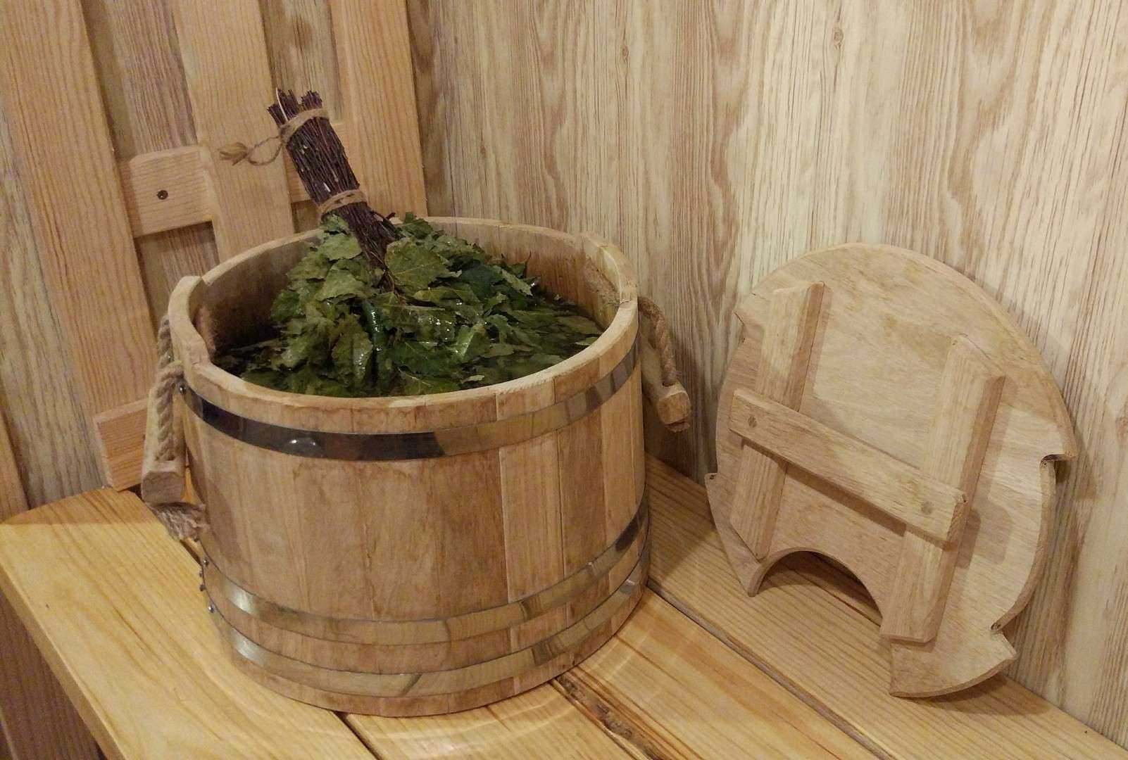 - наполняем ведро прохладной водой, куда окунаем веник на пару минут;