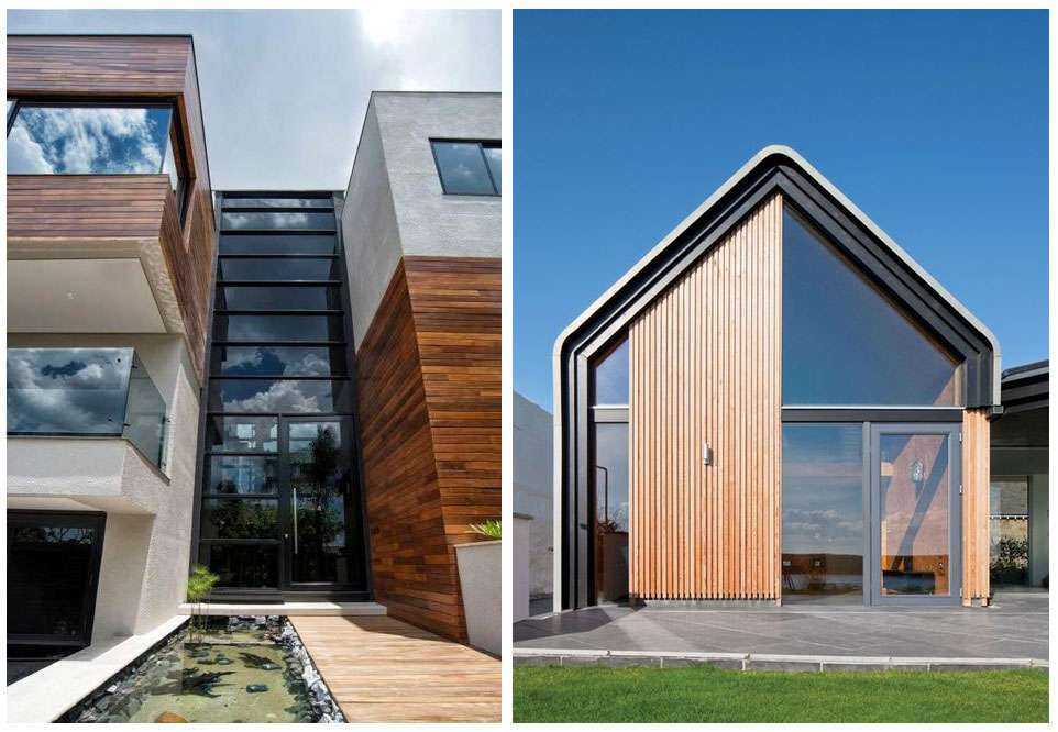 Фасад дома в стиле модерн органично сочетает в себе черты других стилей.