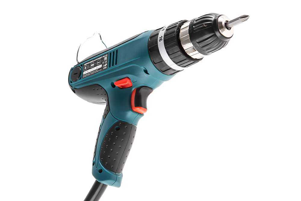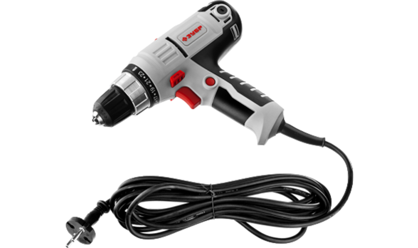 Российский инструмент идеально подходит для высверливания отверстий и разборки крепежей на винтах, шурупах или саморезах. Частота вращения и крутящий момент регулируемые (число ступеней – 24). Прибор оснащен ограничительной муфтой и быстрозажимным патроном, обеспечивающим комфортную работу на протяжении длительного времени. Вес устройства составляет 1,6 кг, балансировка по массе отличная. Безусловное преимущество устройства из России — удобный длинный шнур (5,0 м), позволяющий обойтись без удлинителя. Стартовая кнопка блокируется, что делает работу с устройством совершенно безопасной.