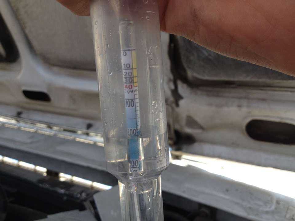 Если проведённый замер показал повышенную плотность электролита, в аккумулятор необходимо долить дистиллированную воду. Приобрести такой дистиллят можно на автомобильных заправках или в специализированных магазинах. Использовать обычную воду из-под крана запрещается. Доливают дистиллят на глаз, после чего вновь проверяют плотность электролита.