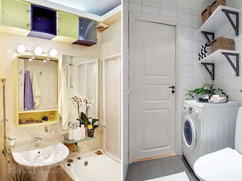 В небольшой ванной, где каждый сантиметр на счету, не использовать пространство, которое в любом случае остается над стиральной машиной, унитазом и даже дверью, просто преступление. В комнате, где весь «нижний ярус» занят разнообразной сантехникой, приходится использовать «верхний этаж», то есть пространство над установленными предметами. Только в таком случае удастся организовать в ванной комнате достаточно мест хранения .