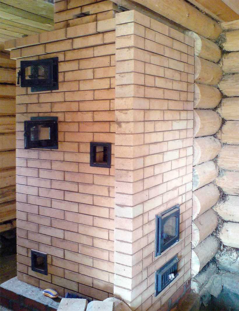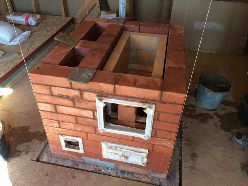 Важно следить, чтобы к дымоходу была обращена гладкая сторона кирпича. Для дверок топки и зольной камеры монтируют стальные полоски и пазы для металлической проволоки