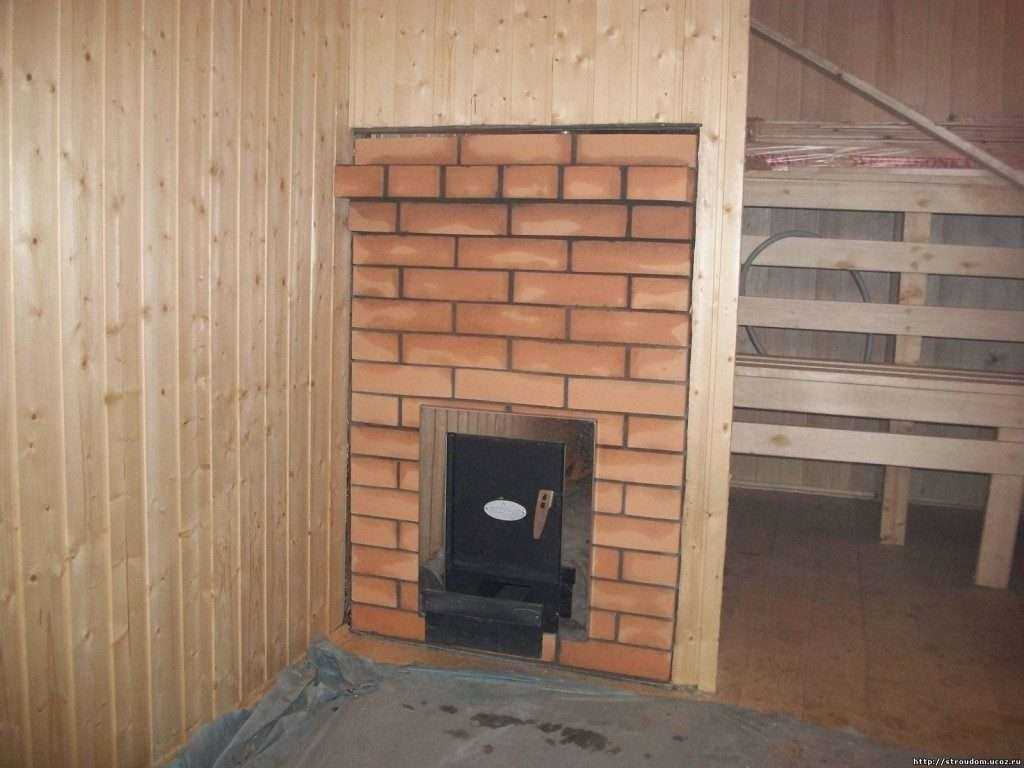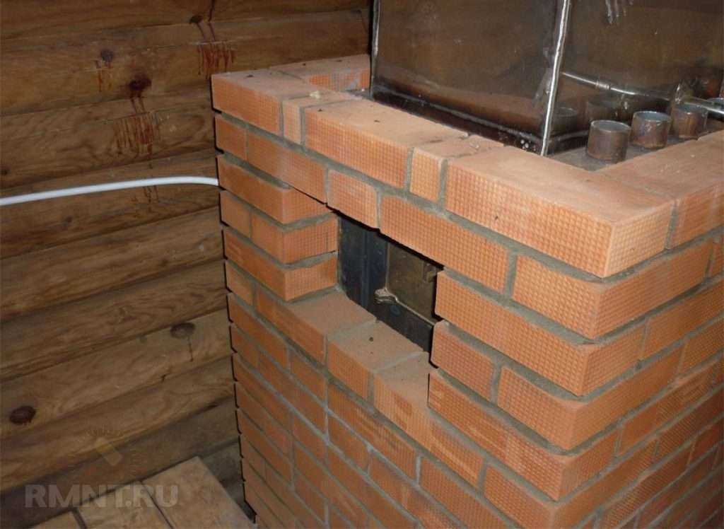 Каким кирпичом обложить печь в бане, можно узнать у опытных печников. Первый ряд материала укладывается без использования раствора. При укладке дальнейших рядов прослойку между кирпичными рядами делают толщиной до 4мм. Возведение внутренних перегородок ведут одновременно с кладкой наружных стен, чтобы видеть результат работы. Каждый последующий ряд перекрывает предыдущий на 50 %, чтобы максимально укрепить места стыков. Качество строения стен периодически проверяют при помощи строительного уровня