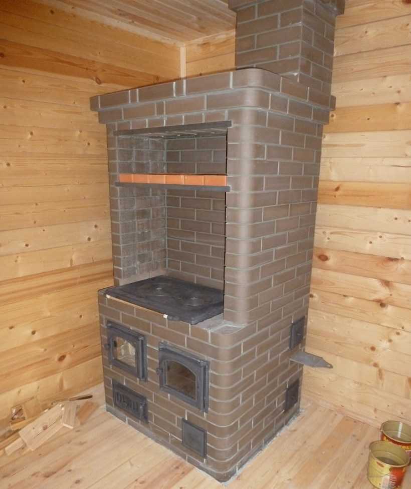 Готовая печка из кирпича своими руками может быть облицована керамической плиткой, изразцами или просто окрашена белой краской.