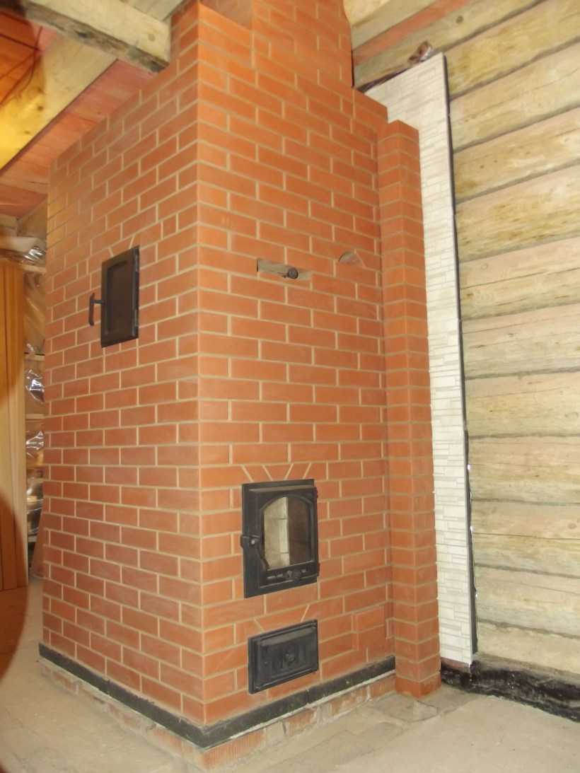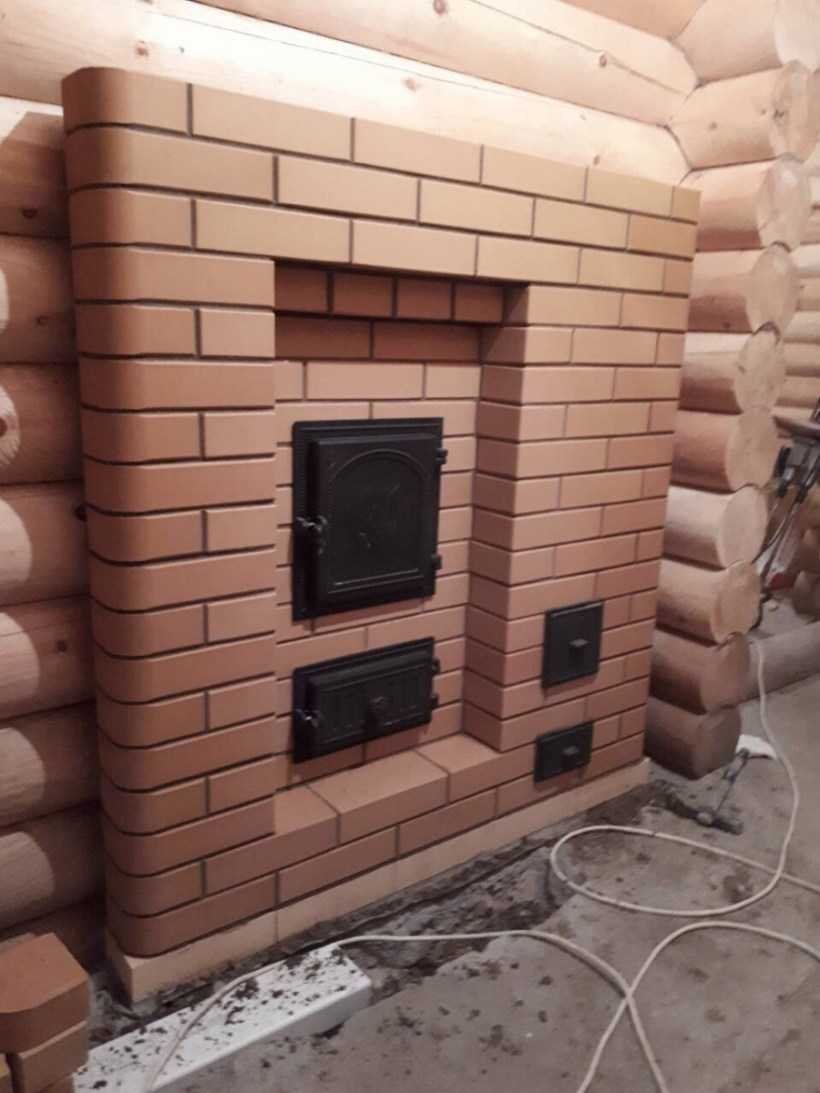 После окончания кладки стен монтируют массивные металлические дверцы для камер, используя поворотные крепежи на стыках.