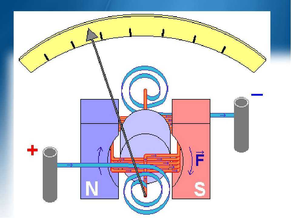 При прохождении тока по обмотке все витки ее будут испытывать действие электромагнитной силы. Общее воздействие всех сил создаст вращающий момент, который повернет катушку и вместе с ней стрелку. У постоянного магнита его индукция поля тоже постоянна, а число витков обмотки, ее размер и воздушный зазор для конкретного механизма известны.