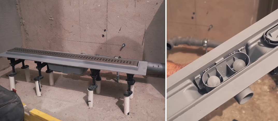 Шаг 4. Еще раз проверьте положение трапа, если все в норме, то можно приступать к заливке поддона.