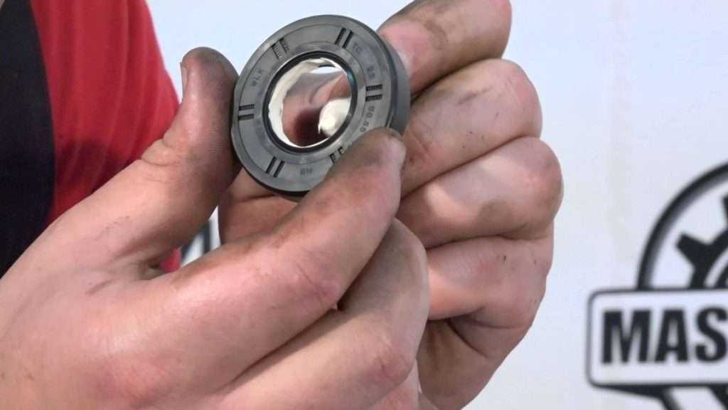 После полного демонтажа машины, приступаем к смазке сальника -наносим ее равномерно по всей площади внешнего контура манжеты. После этого вставляем сальник на рабочее место и аккуратно смазываем его внутреннюю часть.
