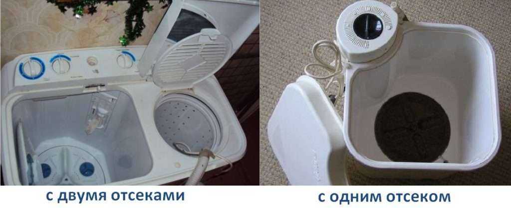 - С двумя отсеками – у таких машин есть отсек для стирки и полоскания белья, а также отсек для отжима.