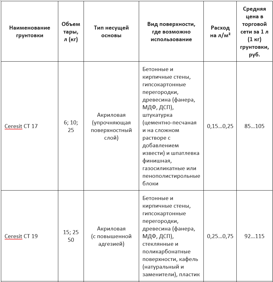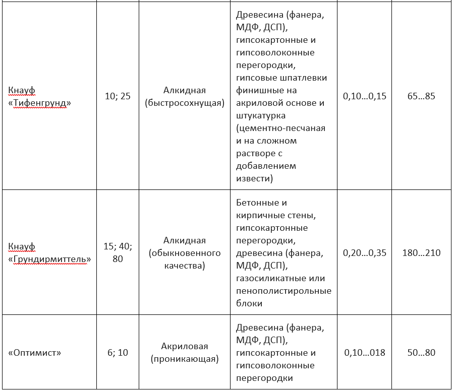 В таблице 1 показаны несколько наиболее распространенных видов праймеров, чаще всего присутствующих в торговой сети.