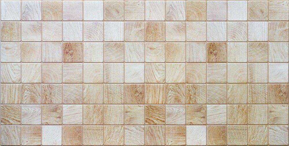- Мозаичный. Бывает с матовым и глянцевым блеском. Достаточно трудоемок при монтаже из-за маленького размера плиток. Применяется для оформления стен кухонь и ванных комнат.