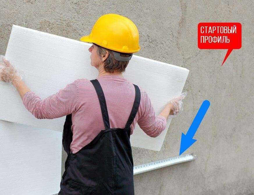 Чтобы основательно приклеить пенополистирольный утеплитель, очистите поверхность до материала утепляемой поверхности. Установите строго горизонтально стартовую планку.