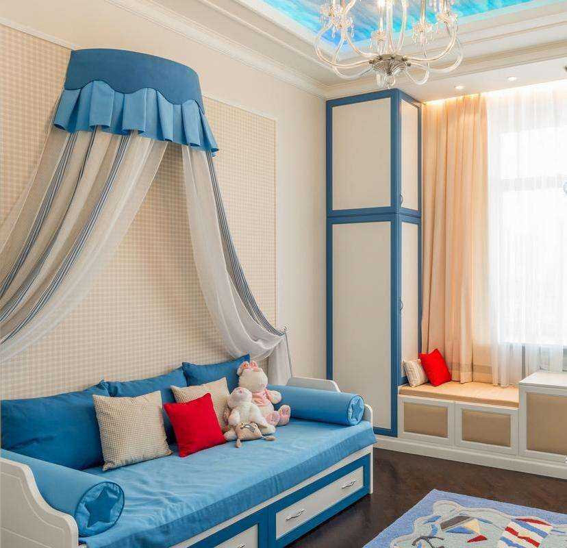 Отделать потолок в детской можно красивыми обоями. Ассортимент так велик, что подобрать желаемый оттенок и рисунок будет очень просто. Виды обоев разнообразны: от плоских бумажных до обоев с объемным мягким барельефом.