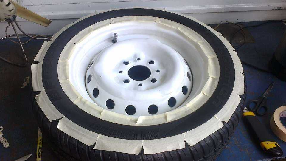 В частности, при украшении покрышек, чаще всего используют белый цвет. Он наиболее контрастный по отношению к черному фону. К тому же стоит белая краска обычно дешевле цветной. Впрочем, необходимое количество краски настолько мало, что цена вряд ли играет здесь существенную роль.