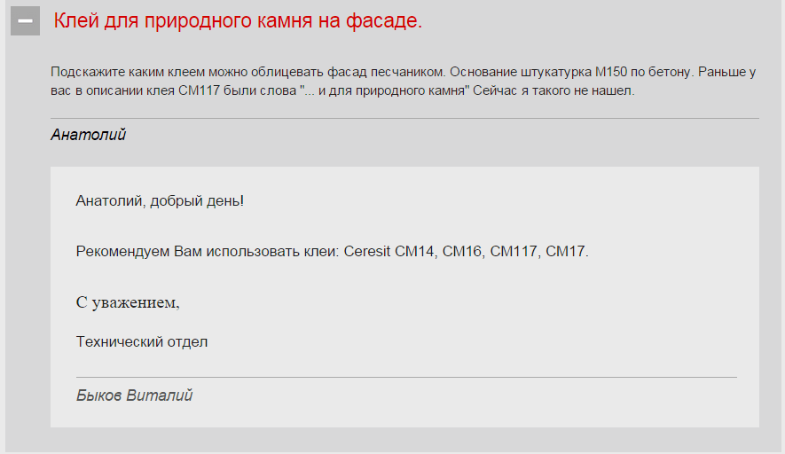 Поступил ответ от фирмы “Ceresit”на мой вопрос :