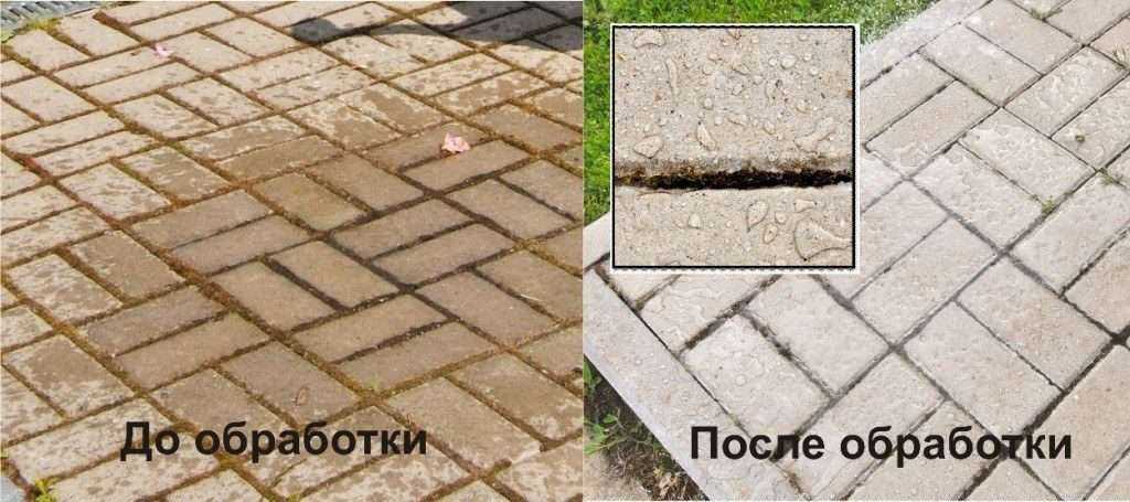 - Устранение плесневелости и мшистости в межплиточных швах и стыках между покрытием и отмосткой.