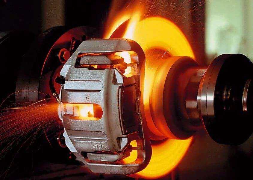 Диски и поверхность колодок при резвой езде и нередких торможениях могут разогреваться до тыщи градусов, это отлично видно по их свечению в мгле. За счёт отвода тепла температура суппортов существенно ниже, но несколько сот градусов можно ждать и тут.