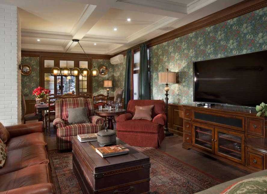 Гостиная в стиле шале славится уютом провинциальной жизни, навевает чувство покоя и гармонии.