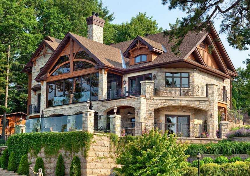 Дома в стиле шале выполняют исключительно из натуральных материалов – дерева и камня