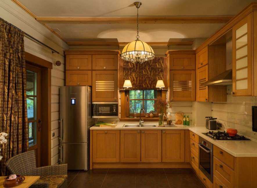 Самым простым способом является встроенная в деревянные шкафы техника. Так, спереди будет обычная деревянная дверца, а за ней — стиральная или посудомоечная машина. Такой предмет, как холодильник, можно легко вписать в интерьер, главное правильно его подобрать. Выполненный из металла холодильник будет хорошо выглядеть на кухне с таким интерьером.