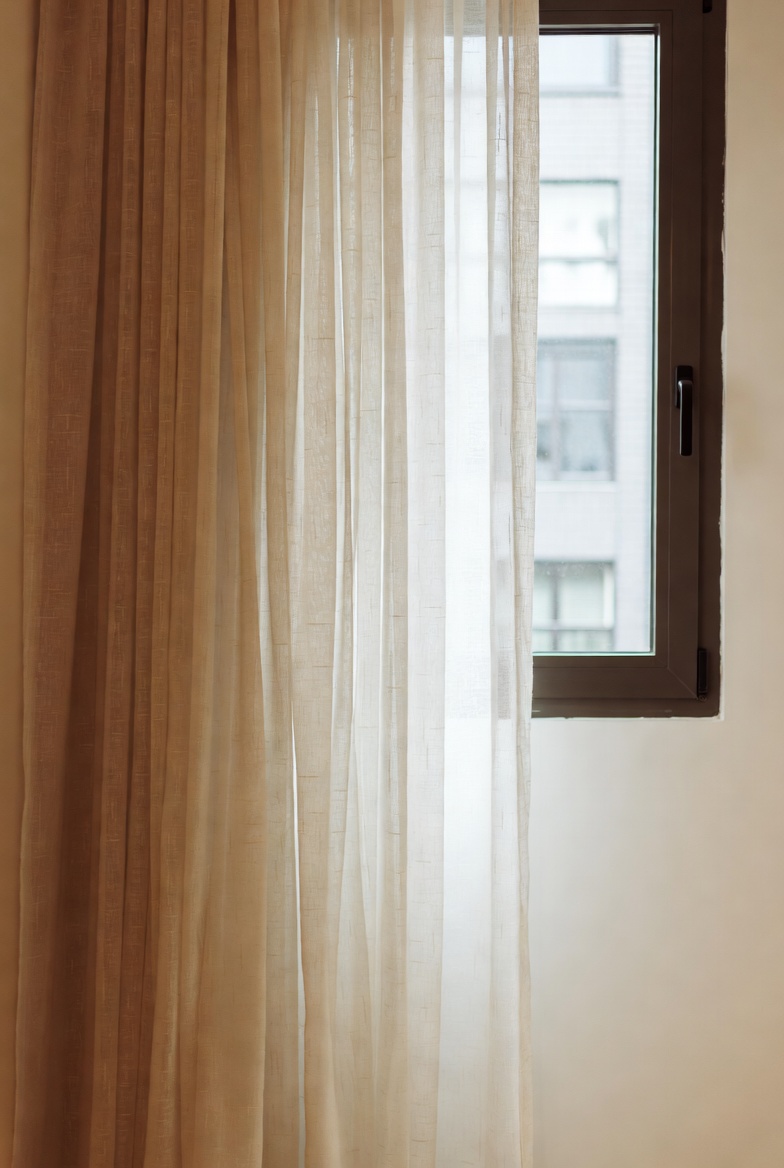 Я выбрала шифон цвета слоновой кости — свет проходит мягко, а складки выглядят воздушно.
